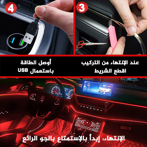 يمكنك من اضاءة الجزء الداخلي الخاص بالسيارة، حيث يتميز بأشعة ليد مميزة و أقل حرارة تتوافق مع صحة العينين، يأتي الشريط بطول 5 أمتار، كافي ليضفي لمسة عصرية و شكلا جديدا على سيارتك.