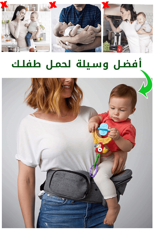 ومن أكثر الطرق الشائعة و الخاطئة لحمل الأطفال هي حمله باستعمال اليدين، الشيء الذي يزيد من عناء حامله، و يجعل الطفل غير مرتاح بوضعيته.